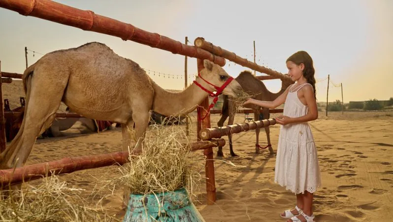 Our camp offers a wide range of activities for children, including camel rides, baby camel feeding, chill zones, a kids' zone, archery, and sandboarding. There are plenty of ways for children to enjoy their time at the camp.